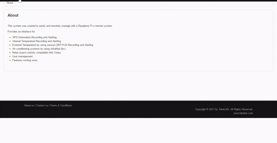 Raspberry SCM is a simple tool that started as a concept to monitor small to medium server rooms remotely, it integrates with NUT to monitor UPS systems, different temperature sensors DHT11 & DHT22, email alerts, permissions and finally relay control for Power Management.
